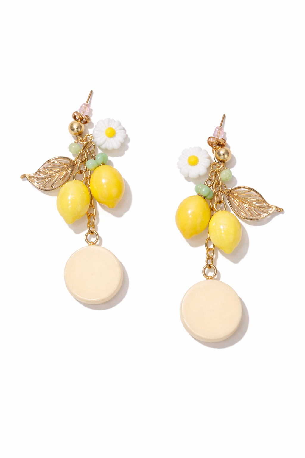 Le pendentif rond couleur crème apporte de la douceur et équilibre le design. L’association du jaune, du blanc, du vert et du doré crée un contraste élégant et estival. Ces boucles d’oreilles citron femme été sont idéales pour celles qui recherchent un accessoire à la fois original, coloré et tendance.