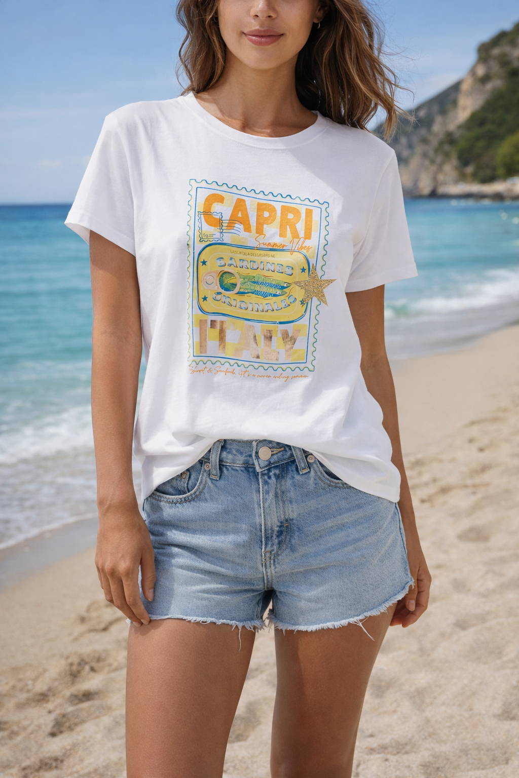 Ce t-shirt été femme est idéal pour composer des looks frais et lumineux. Parfait pour les vacances, les week-ends ensoleillés ou les journées détente, il combine praticité et élégance. Son motif inspiré de Capri évoque la dolce vita et invite au voyage, tout en restant moderne et facile à porter au quotidien.