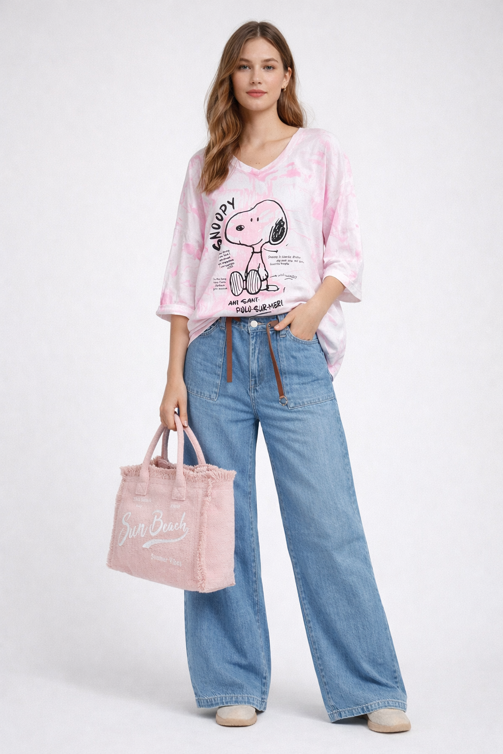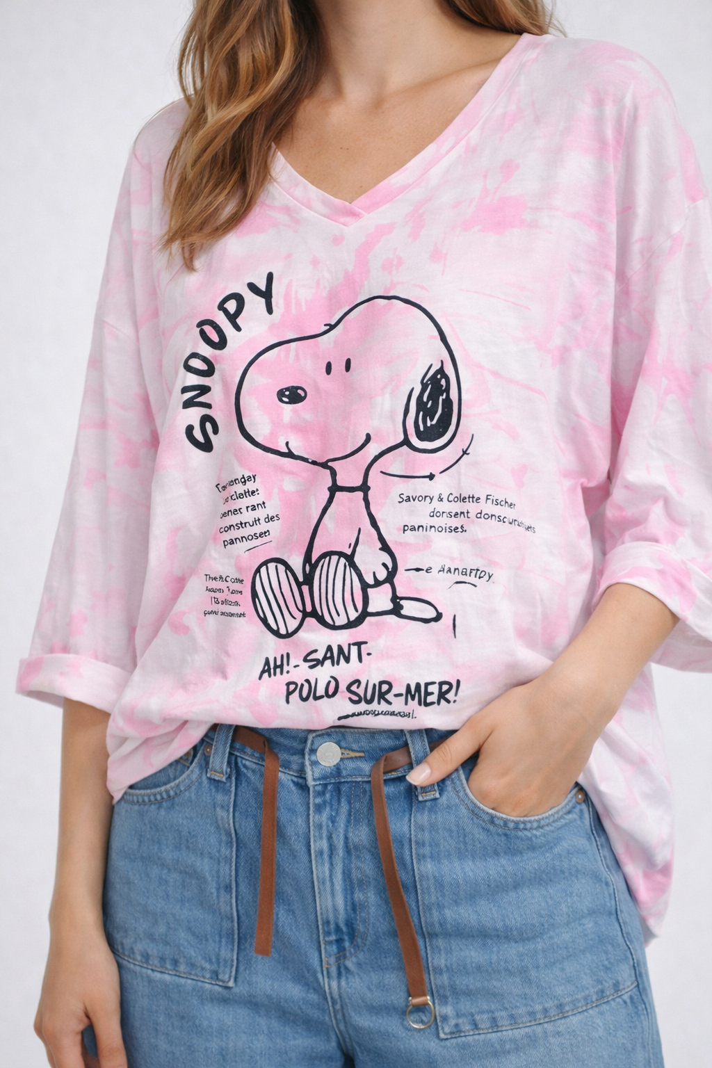 Tee-shirt Snoopy rose pour femme au style Peanuts, avec imprimé tendance et coupe confortable. Idéal pour un look casual, féminin et facile à porter au quotidien.