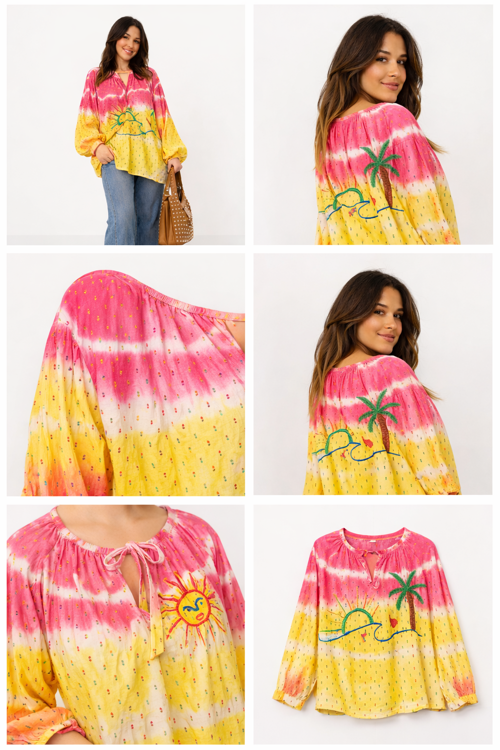 tunique Palmier Bianca dégradée plumtie toute brodé avec ses nuances lumineuses d’orange et de jaune, la tunique Palmier Bianca apporte immédiatement de la couleur et de la bonne humeur à votre garde-robe. Inspirée des paysages tropicaux et des couchers de soleil d’été, elle évoque les vacances, la chaleur et les moments de détente.